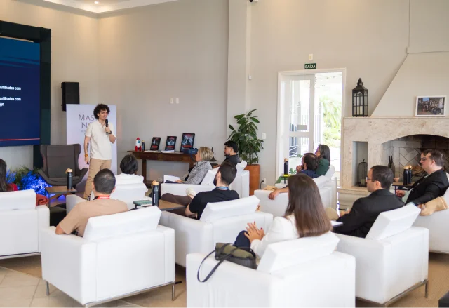 Conecte equipes distribuídas em um momento único de aprendizado estratégico. Com cases reais e metodologia validada, Luccas demonstra como construir negócios digitais com paz e lucro, equilibrando alta performance com qualidade de vida.